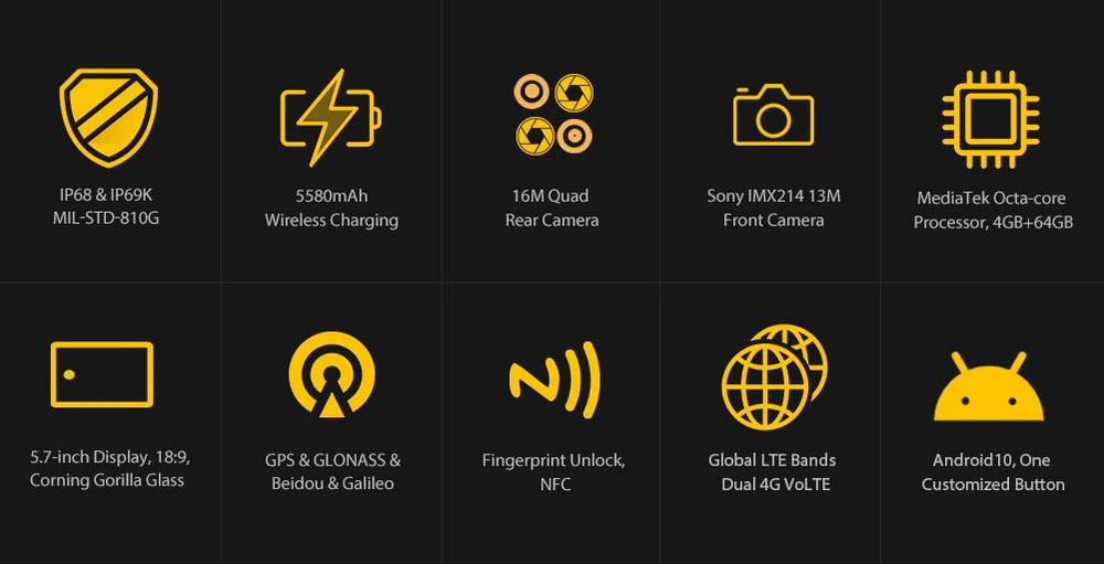 - Водоустойчивый сканер отпечатка пальца, позволяющий разблокировать телефон за 0,1 секунды даже при мокром пальце;