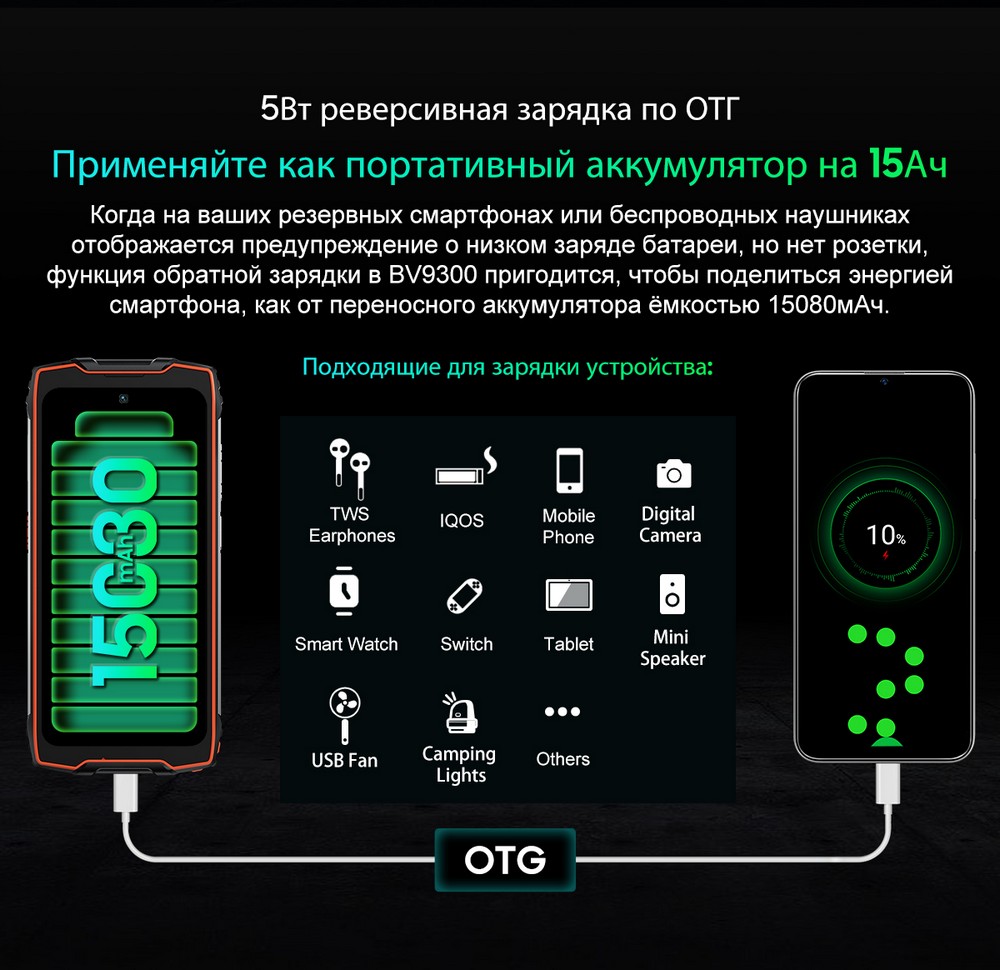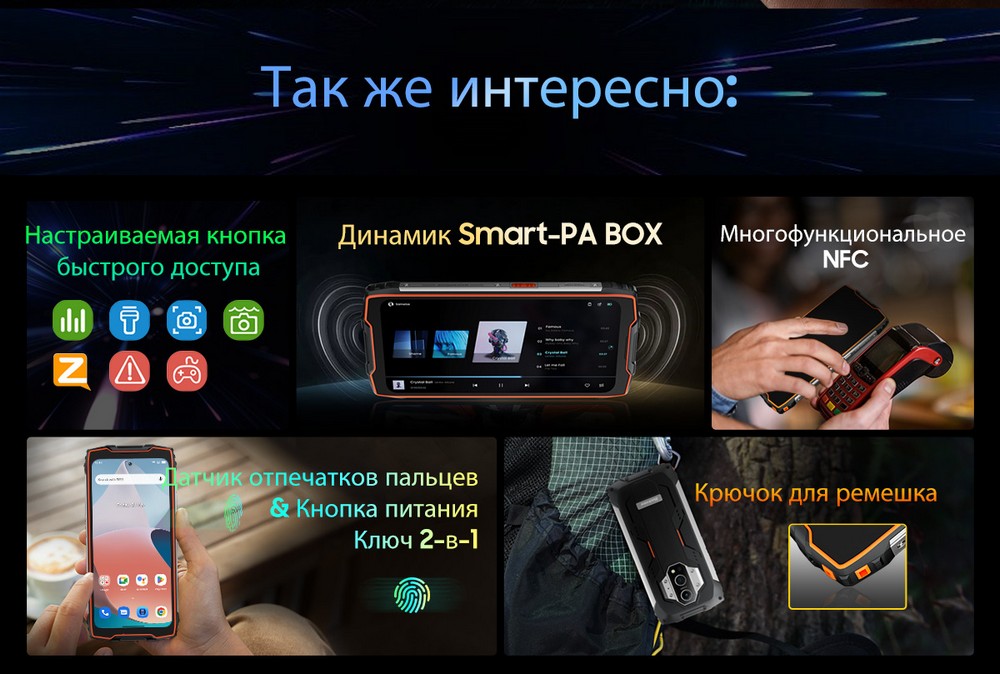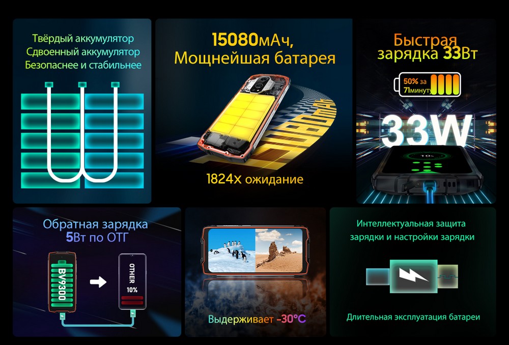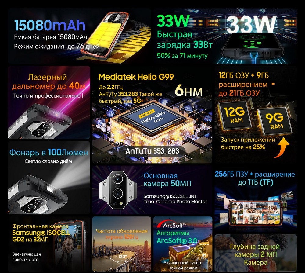 | Дополнительно | Мощный аккумулятор |