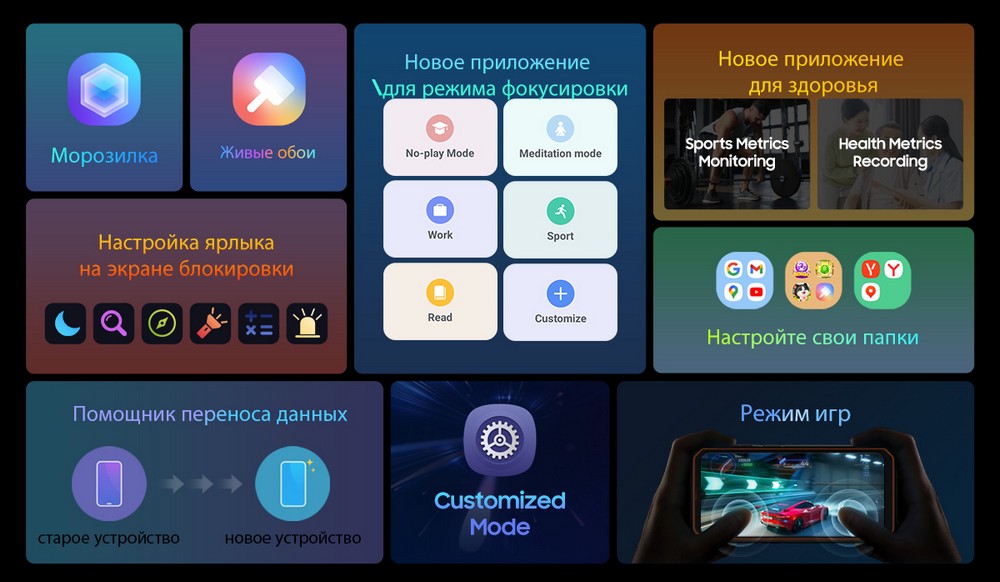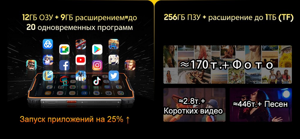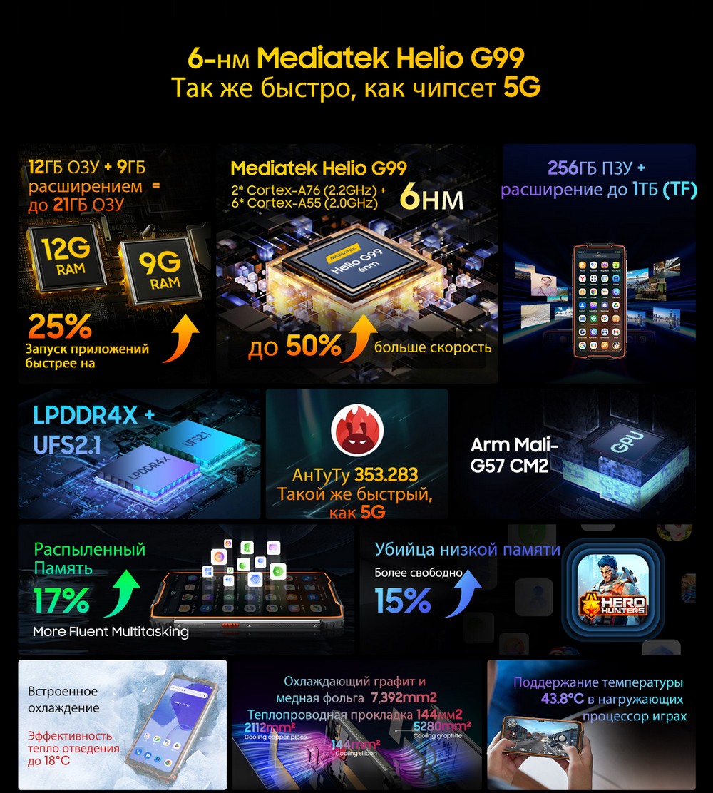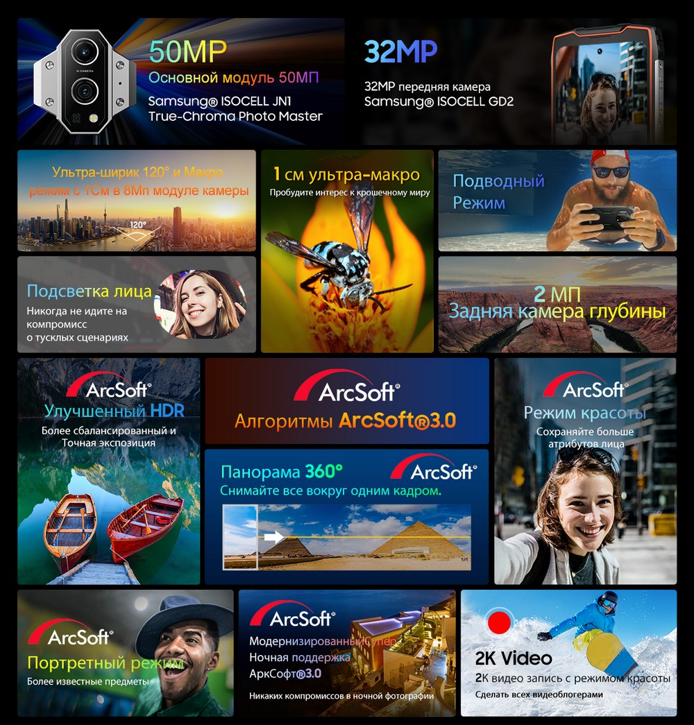 | Дополнительно | Мощный аккумулятор |