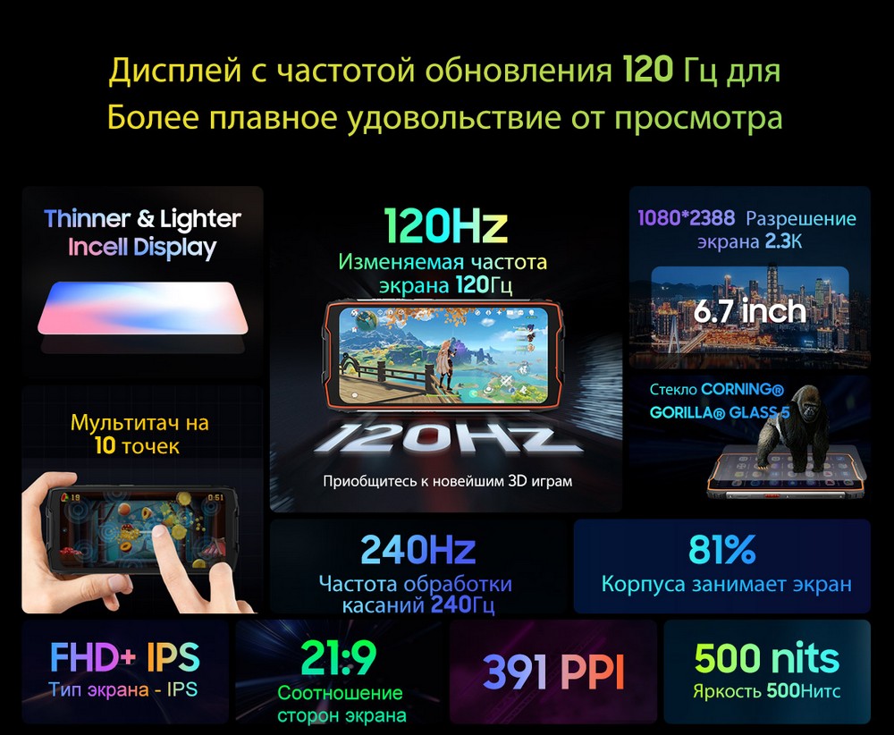 | Разрешение экрана | 2388 × 1080 |