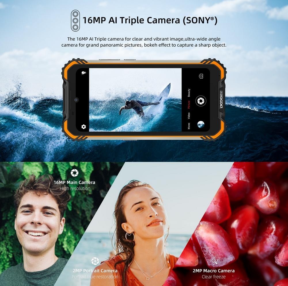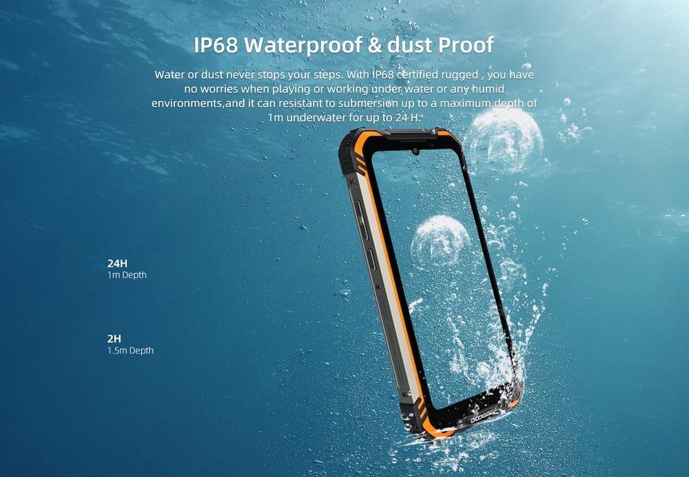 - Корпус смартфона соответствует международному стандарту защиты IP68, а также немецкому IP69-k и американскому военному стандарту MIL-STD-810G;