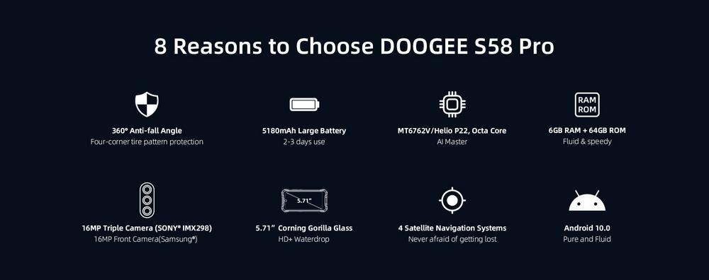 Ключевые характеристики смартфона Doogee S58 Pro 6/64Gb: