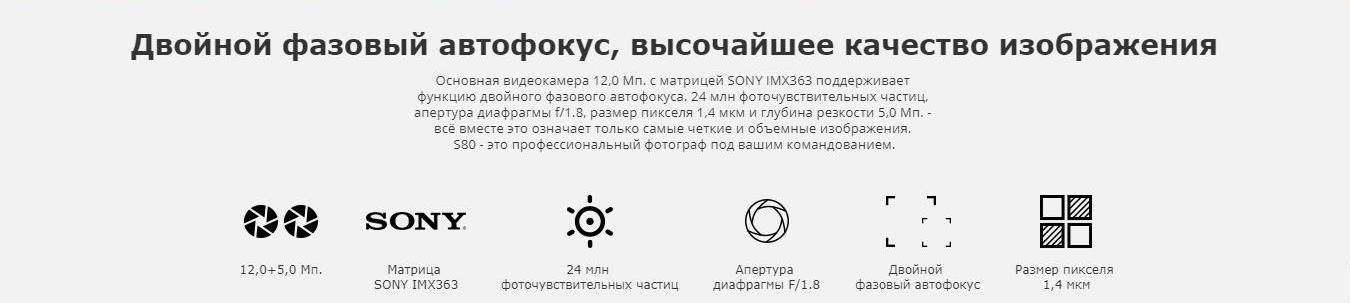 - камеры: 12 Мп (Sony IMX363) + 5 Мп основная сдвоенная камера, диафрагма f/1.8, Dual PDAF, 1.4 мкм; 16 Мп фронтальная камера, диафрагма f/2.0, датчик от Samsung;