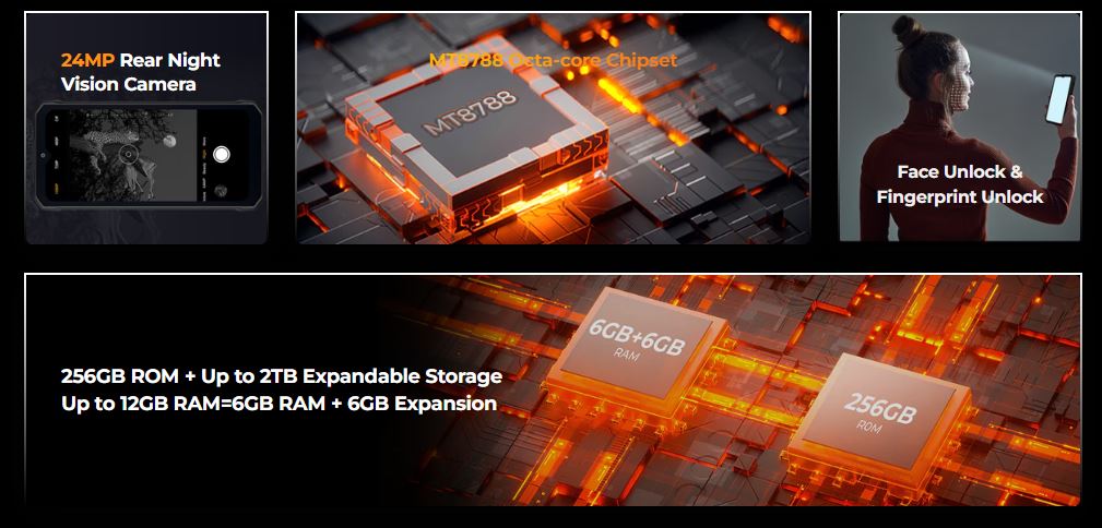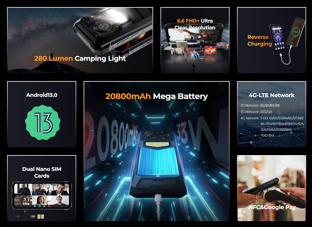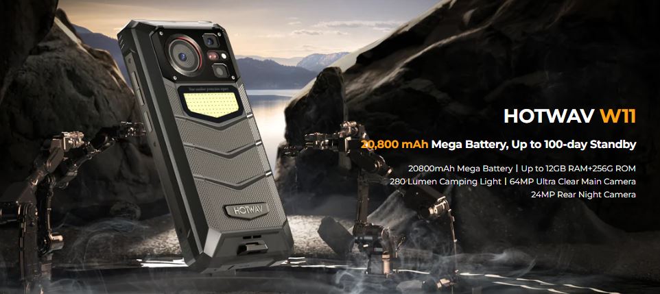 HOTWAV W11 - смартфон со степенью защиты IP68 & IP69K & MIL-STD-810H, с мощной батареей 20800 Мач, фонарём для кемпинга, камерой 64 Мп.