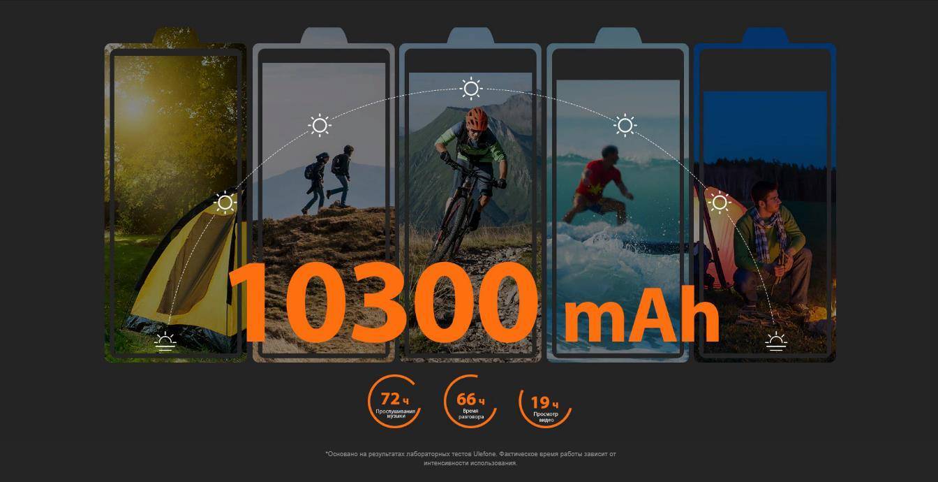 - Смартфон имеет огромную емкость аккумулятора на 10300 мАч, что обеспечит работу смартфона в обычном режиме около 7 дней.