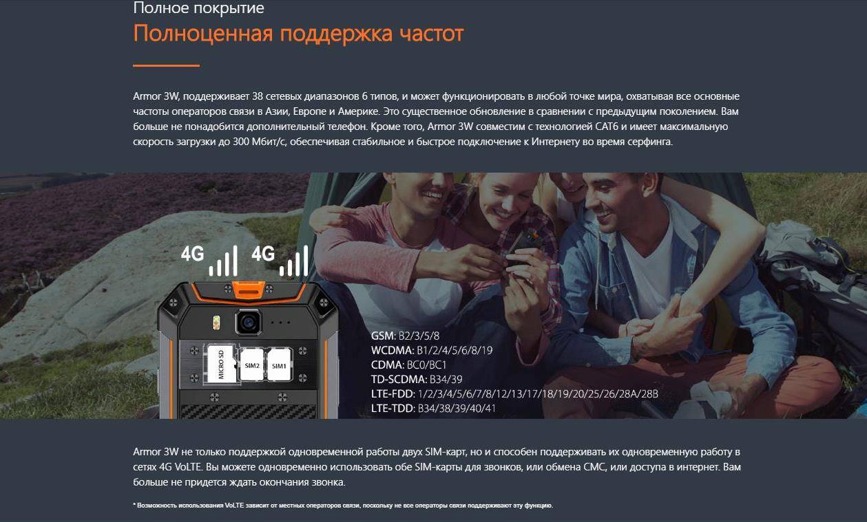 Ulefone Armor 3W полностью русифицирован, готов к использованию в GSM, 3G и 4G сетях на территории РФ.