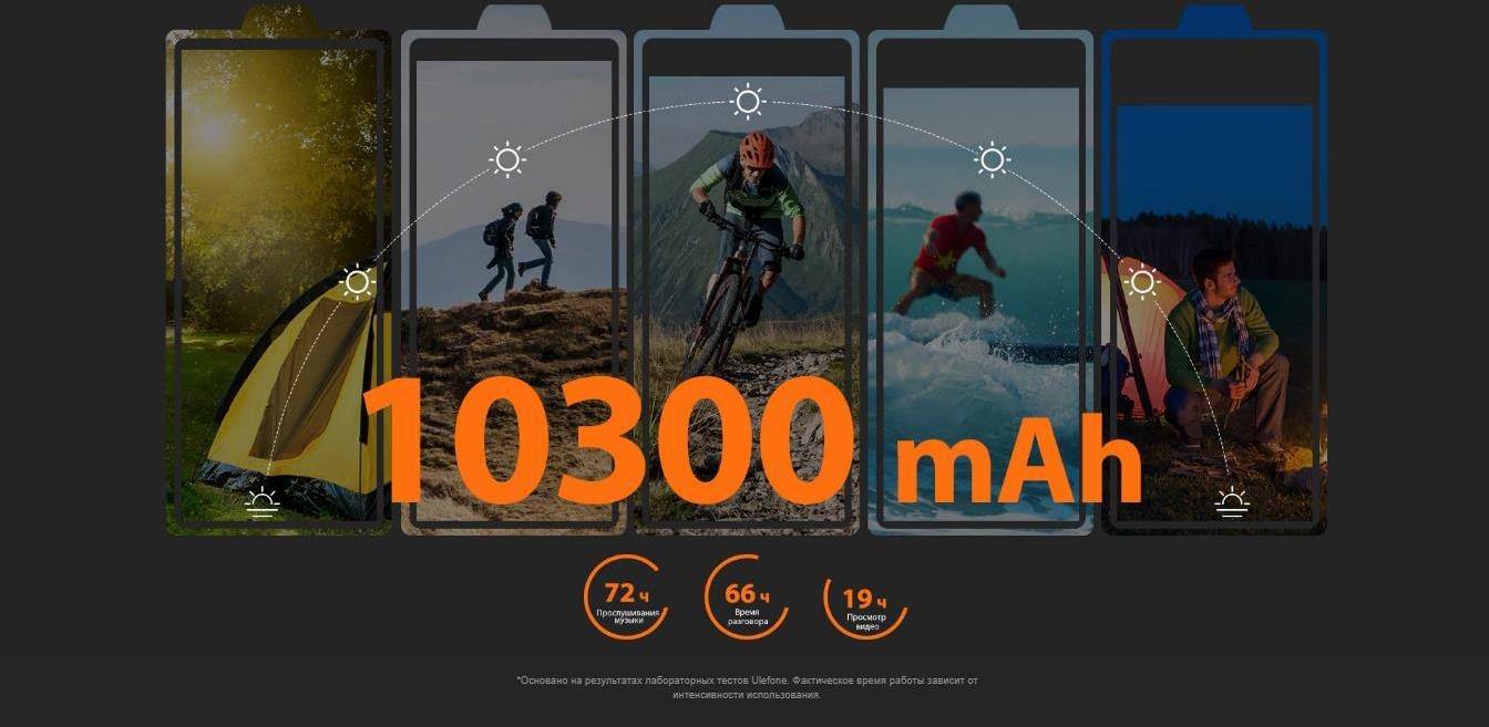 - Смартфон имеет огромную емкость аккумулятора на 10300 мАч, что обеспечит работу смартфона в обычном режиме около 7 дней.
