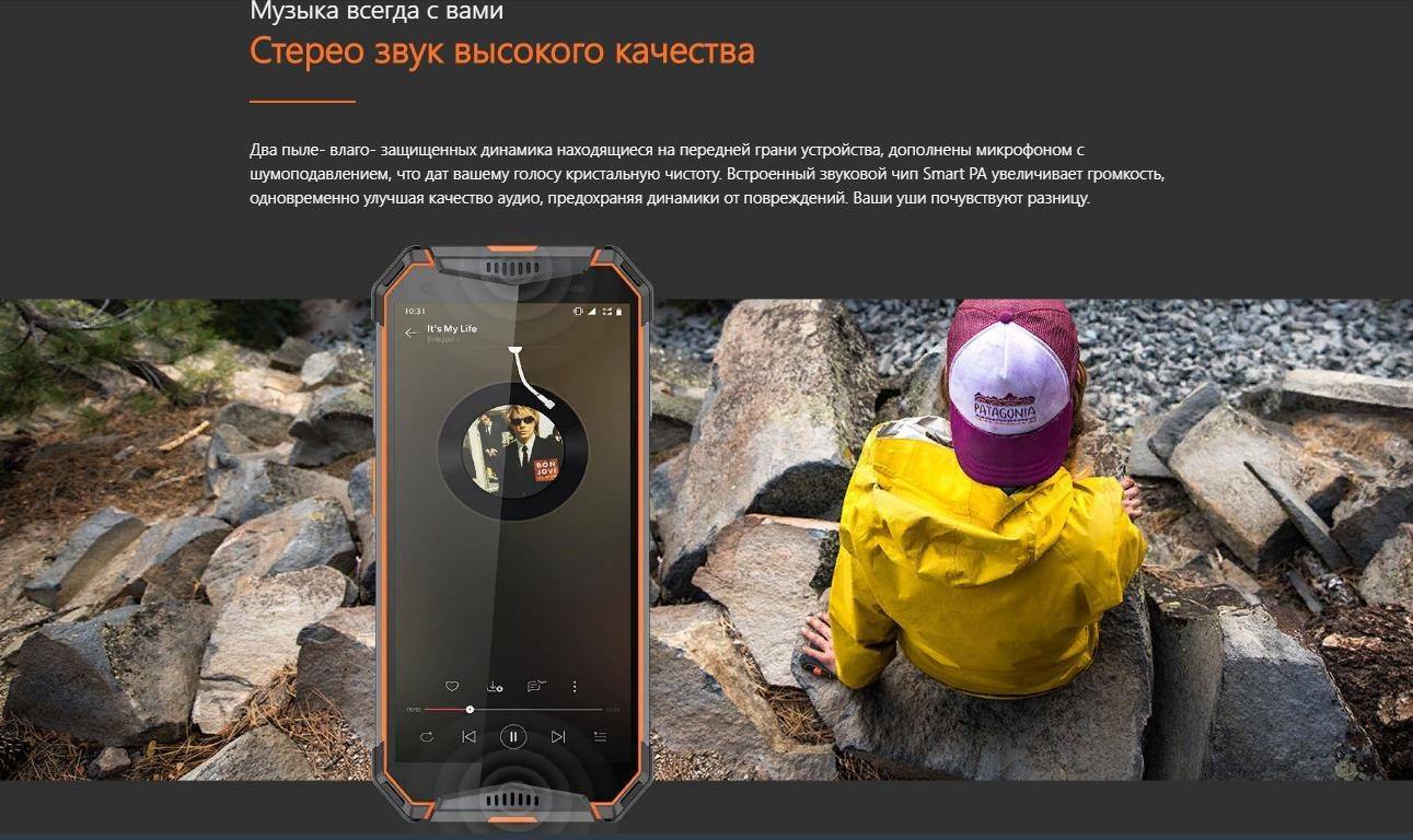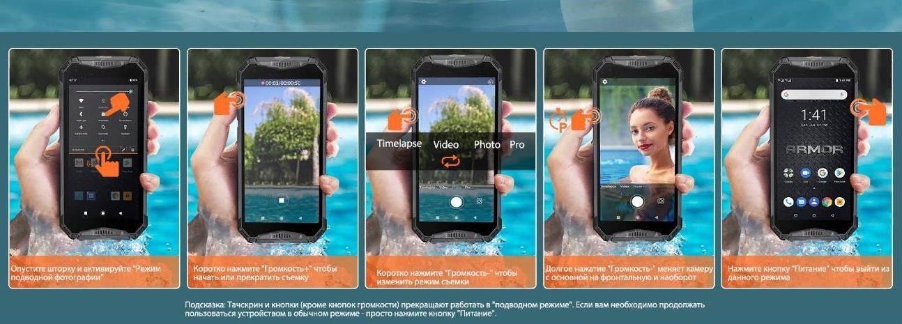 - Этот полностью водонепроницаемый смартфон к тому же имеет военный стандарт США MIL-STD-810G, подтверждающий его защиту от ударов. Противоударный корпус прорезинен, приятен на ощупь и не даст выскользнуть из мокрых рук. По всему периметру он защищен резиновыми накладками, гарантирующими сохранность аппарата при падениях на твердые поверхности. По бокам прикручены металлические накладки, там же находятся кнопки питания, регулировки громкости и вызова интернет-рации.