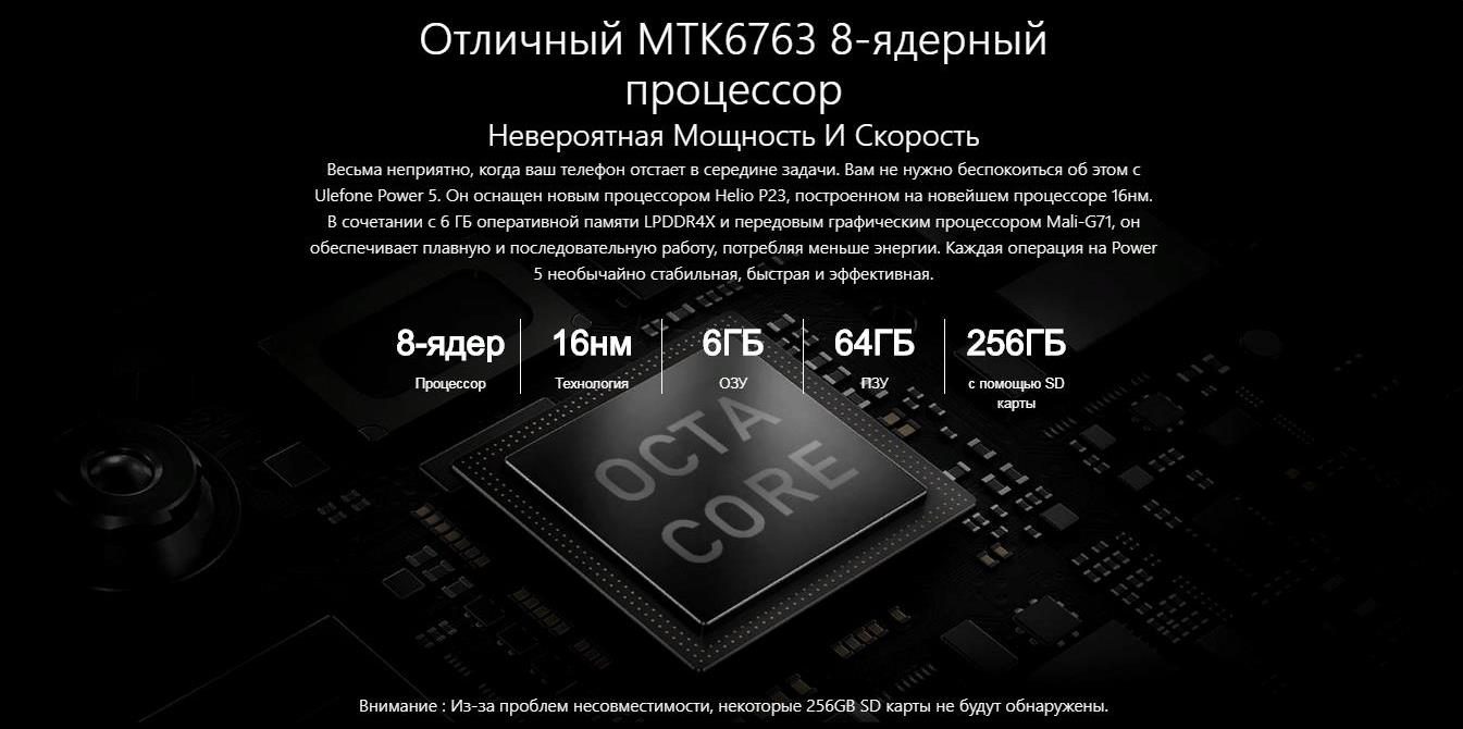 Ulefone Power 5 полностью русифицирован, готов к использованию в GSM, 3G и 4G сетях на территории РФ.