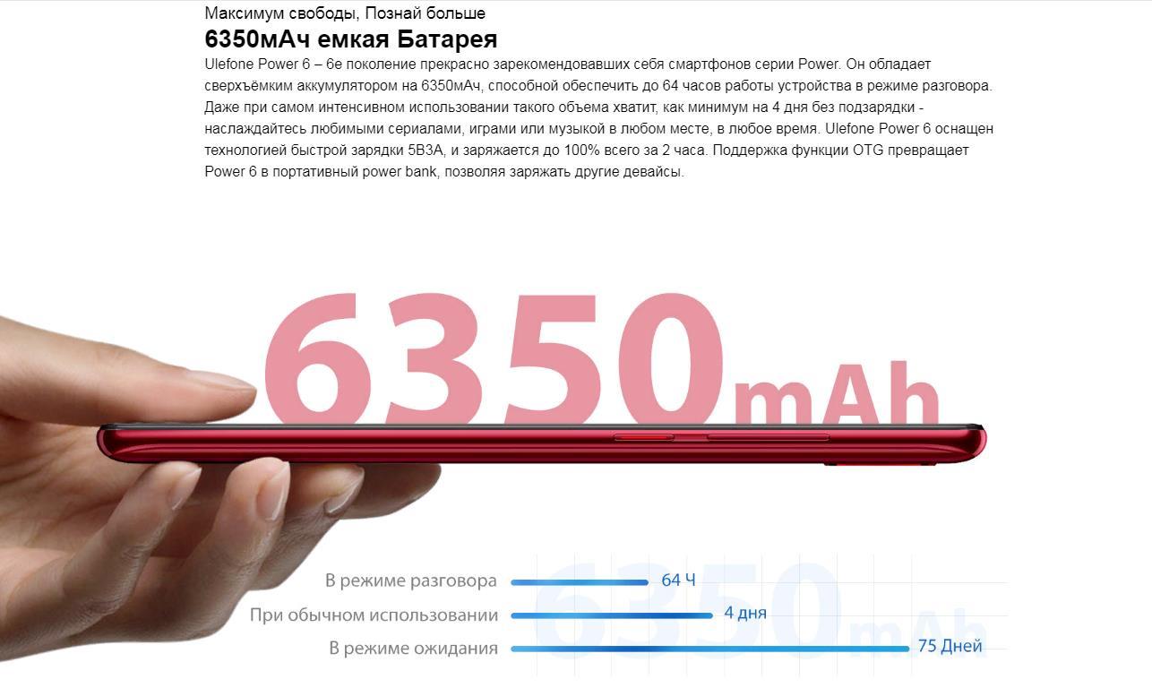 Ulefone Power 6 полностью русифицирован, готов к использованию в GSM, 3G и 4G сетях на территории РФ.